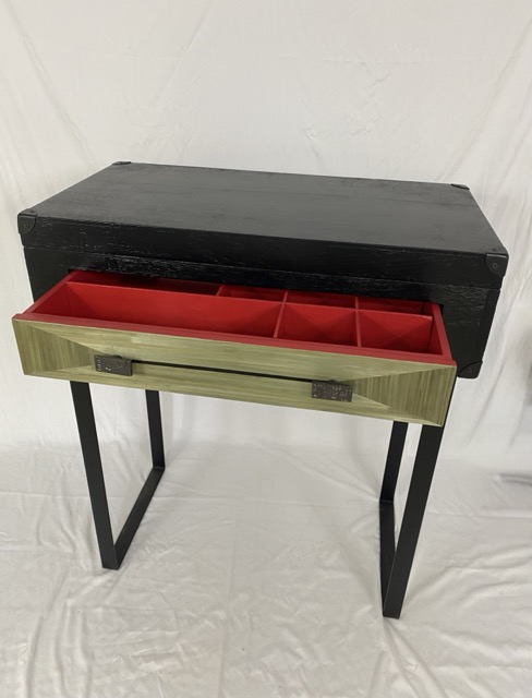 On ne le dirai pas comme ça, mais je transportais du lourd! Maintenant, j’ai une nouvelle vie, en intérieur plus raffinée en tant que console noire contemporaine!